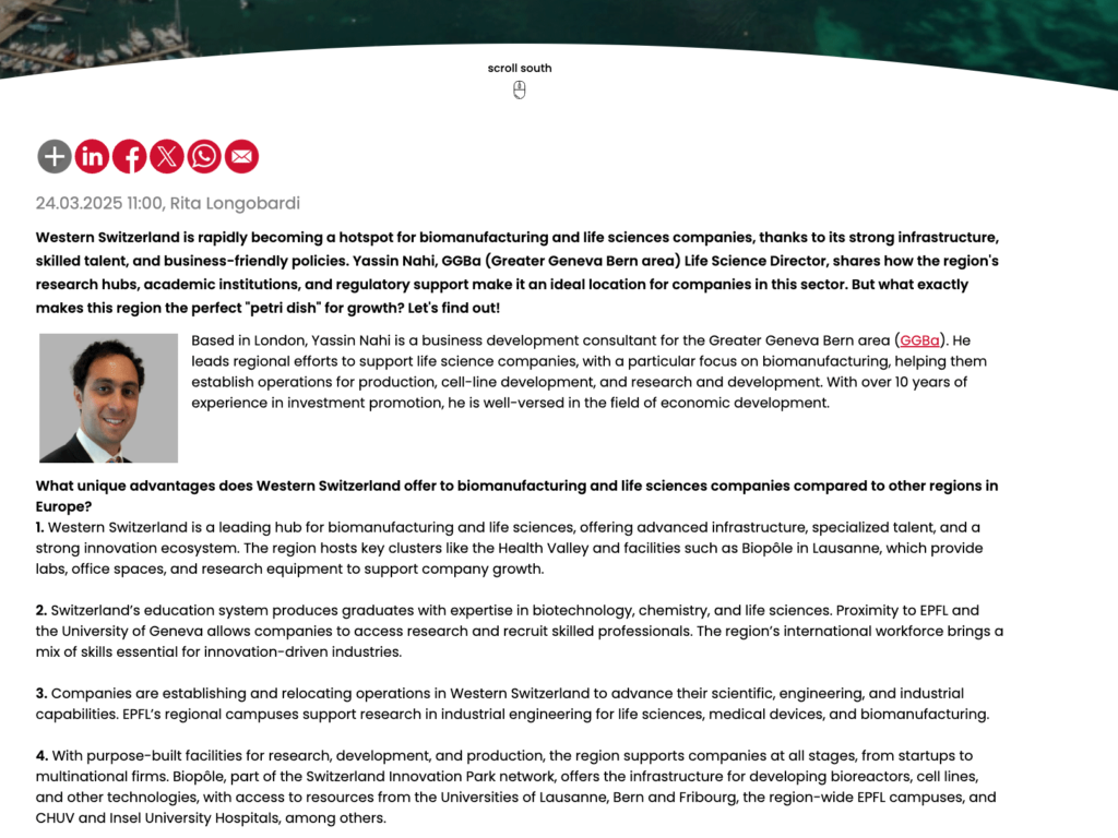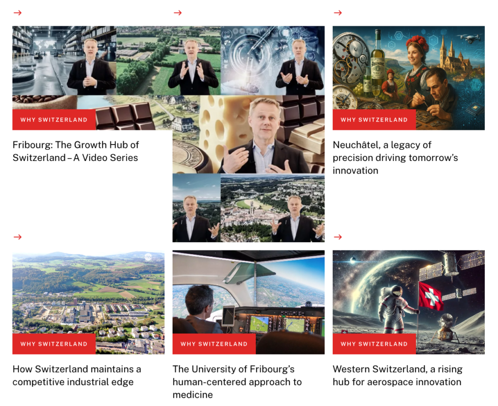 A renewed Why Switzerland content series further strengthened GGBa’s narrative. Developed primarily as in-depth articles complementing existing factsheets, the series explored Switzerland’s competitive advantages by canton and by sector. Topics ranged from the structural foundations of Switzerland’s economic success to digital manufacturing in Fribourg, artificial intelligence in Western Switzerland, industrial competitiveness, and Neuchâtel’s evolution from watchmaking heritage to precision-driven innovation.
