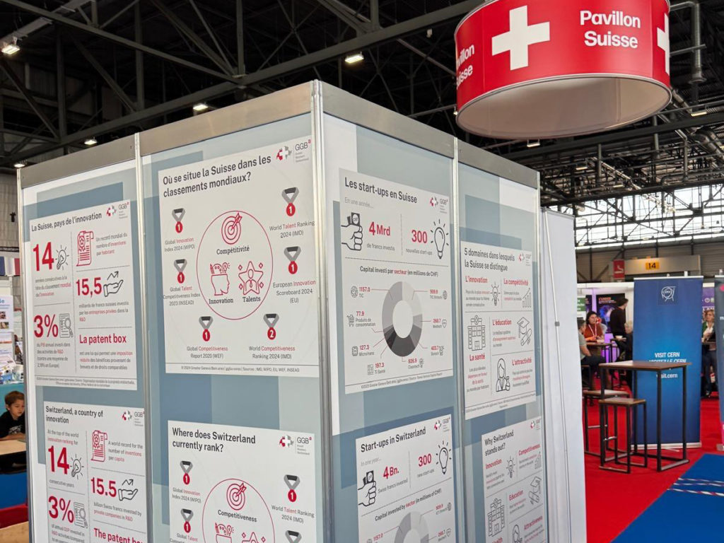In 2025, GGBa further expanded its international reach through targeted collaborations with strategic partners, amplifying the visibility of Western Switzerland’s innovation ecosystem. About Switzerland and SwissTech (Présence Suisse) supported the distribution of GGBa’s infographics across their platforms, while the Swiss Innovation Pavilion at the International Exhibition of Inventions printed and prominently displayed these materials on site, giving the region direct exposure to an international audience.